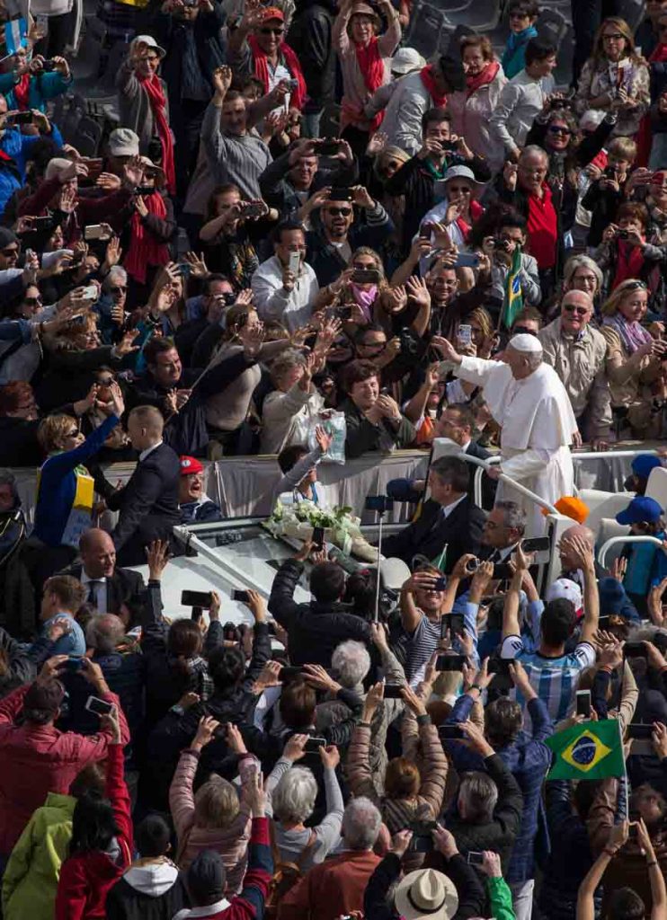 Roma, 19.3.2013. Pope Francis thrilled tens of thousands of people on Tuesday gathered for his installation Mass, taking a long round-about through St. Peter’s Square.