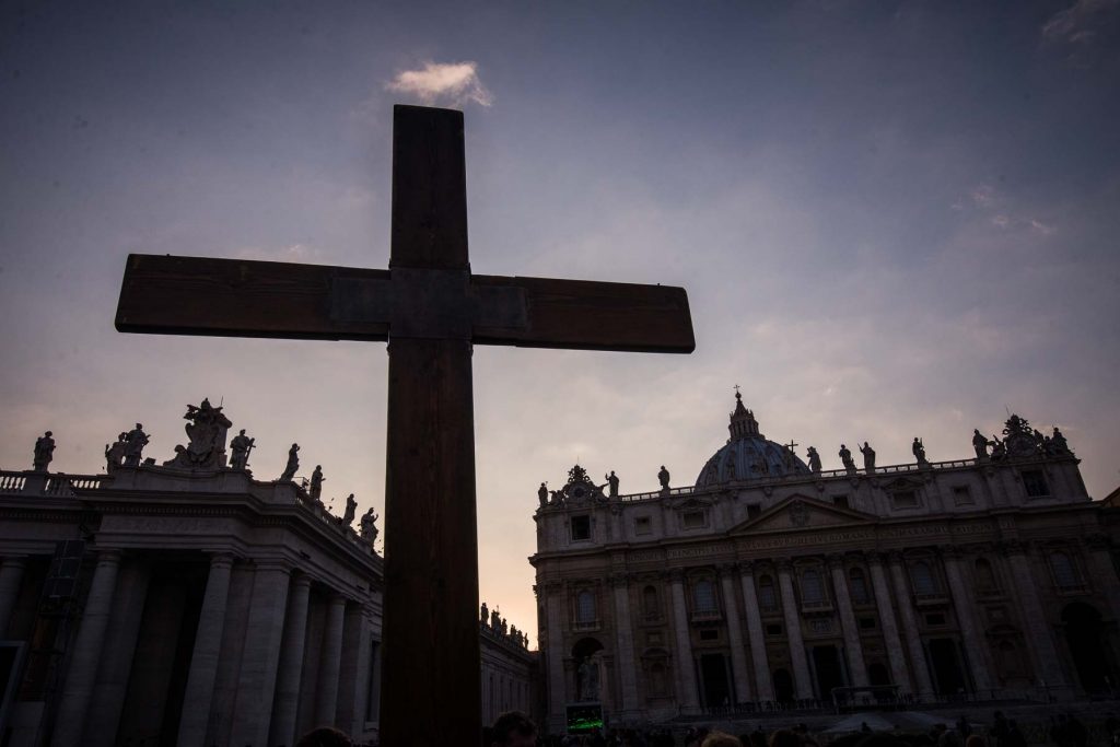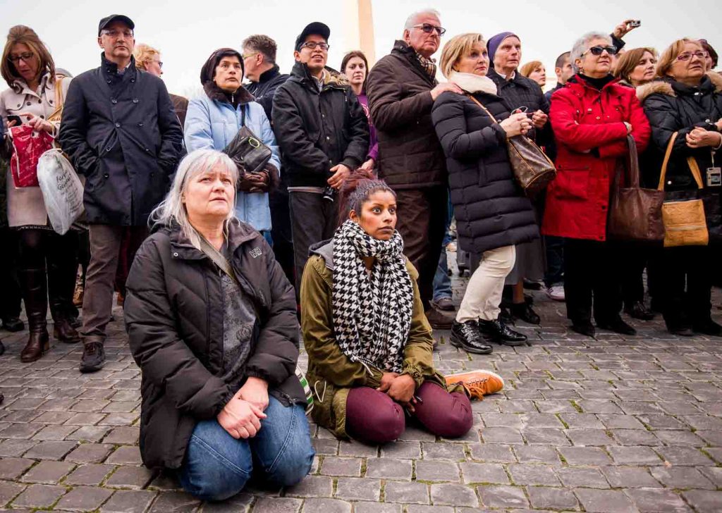 29.3.2013, Roma, Italia, Cittá del Vaticano, La gente si prepara per assistere alla messa del Venerdí Santo di Papa Francesco