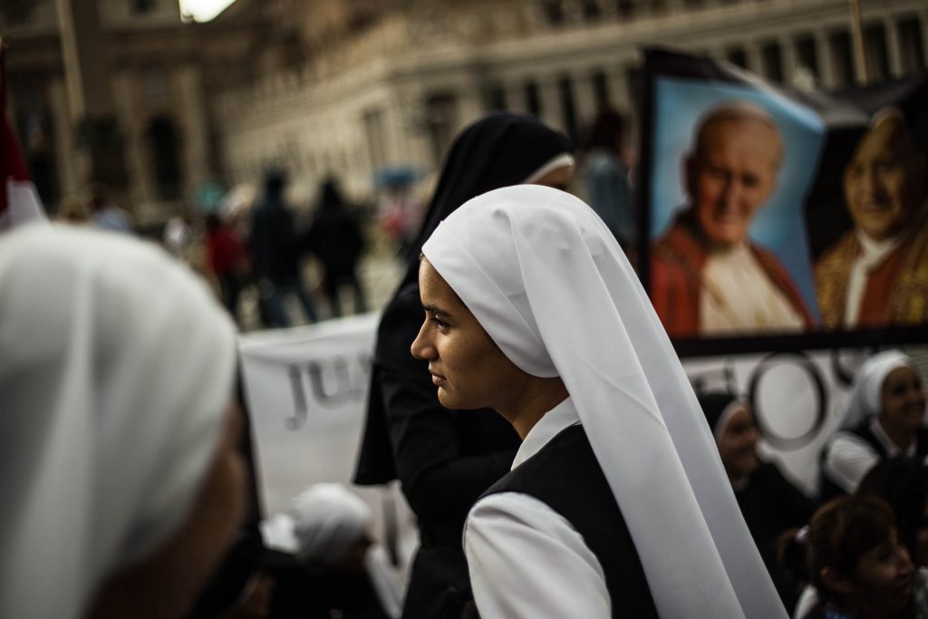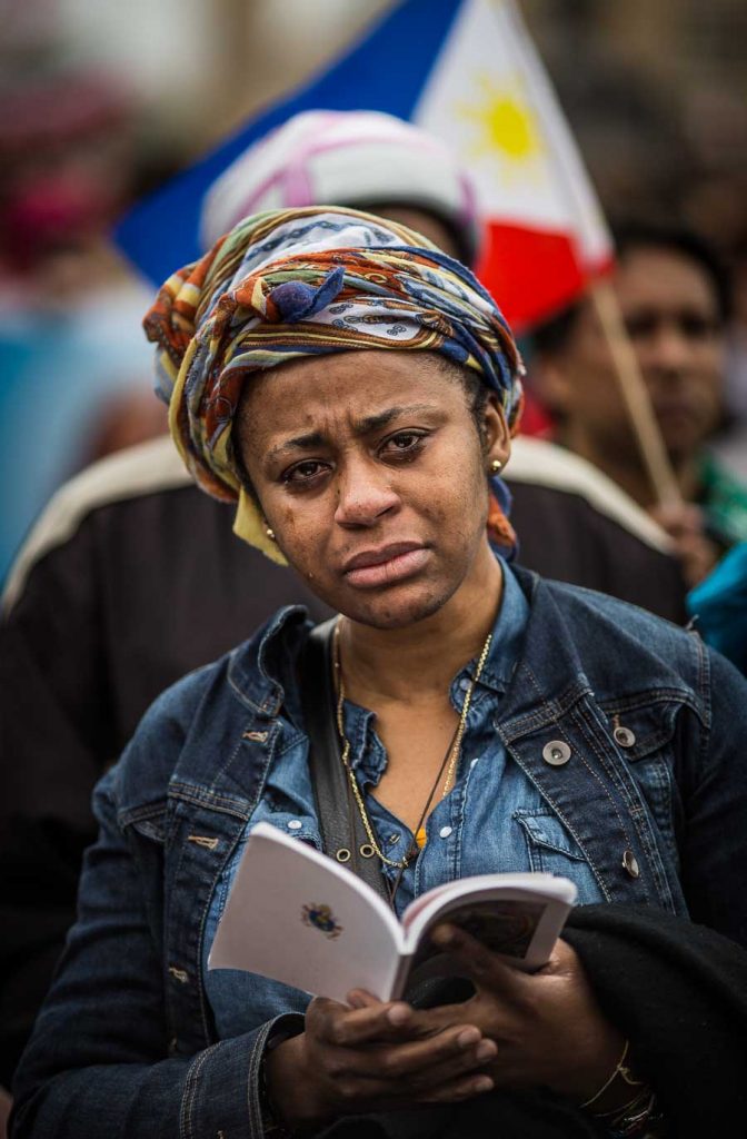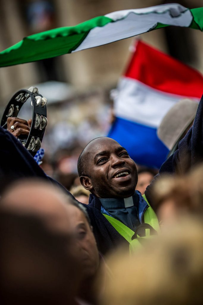 Rome, Italy, 27/4/2014.Two popes become saints in historic canonization ceremony.Pope Francis declared John Paul and John XXIII saints on Sunday morning, under grey skies, a crowd estimated at 250,000 in the Vatican’s St. Peter’s Square and streets nearby erupted in applause. Hundreds of polish flags were waved and some pilgrims wept with joy.