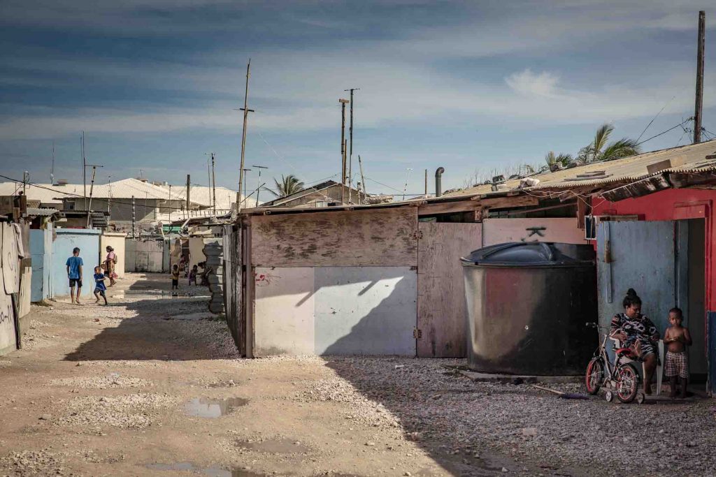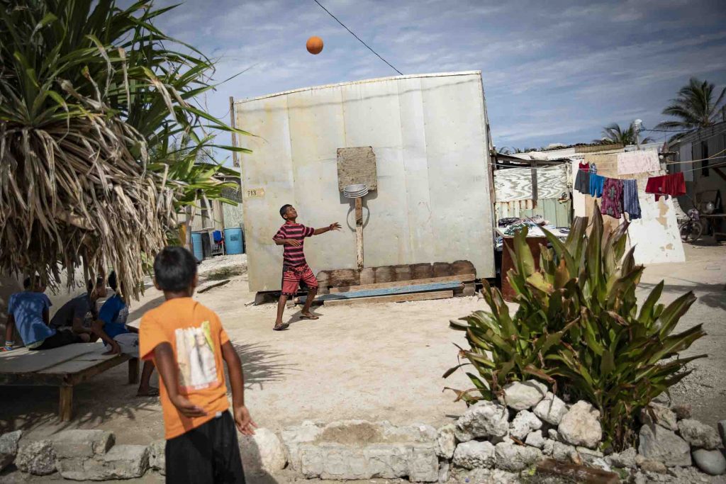 Journey to Ebeye Island, in the Marshall archipelago. The population density is the highest in the Pacific, have earned Ebeye the nickname of "Pacific Slum". But once you get here, you realise that this nickname does not reveal the whole truth. In fact, many of the inhabitants who have studied or lived in the US prefer to return here where an atmosphere of peace and tranquillity reigns. Children are free to run around and play where they please, life is regulated at a non-stressful pace and everyone lives in symbiosis with their beloved land. This island is the home of 13 thousand people who live in less than 1 square km striving to keep their past active, and trying to feed the hope of a future made uncertain by the rise in sea level. Arrival at Kwajalein airport, after a 3-day trip by plane from Europe. The last part of the route was on board a small plane called the "Island Hopper" which connects the island of Guam with Hawaii, making a stopover in about ten islets and atolls. I am the only one to get off at this "stop" and the welcome is much less colorful and floral than those I witnessed from the airplane window during previous stopovers. I am in the middle of an American military base adjacent to Ebeye Island and I am greeted by two marines who take me to a room asking me to open my bags. Why am I there? I'm on behalf of an American NGO that is bringing water purifiers and developing an application to be able to quickly survey a community. In the event of extreme events such as typhoons, hurricanes, earthquakes or fires, you need to know quickly where the most vulnerable people live, from diabetics to wheelchair users. In this way, the rescuers will know how to move and how many people to look for in a certain sector. This app has already been successfully tested in the Philippines and it was decided to implement it also on Ebeye. I will be staying here for about 14 days. Most of Ebeye's inhabitants work at the American military base in Kwajalein, a few miles away, representing the only stable source of entry.