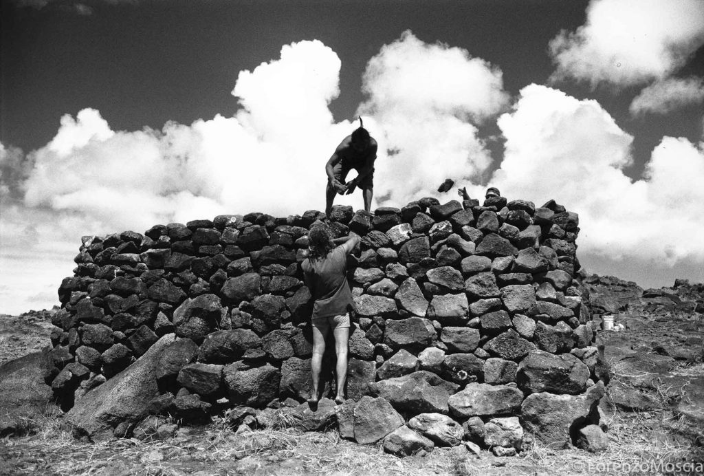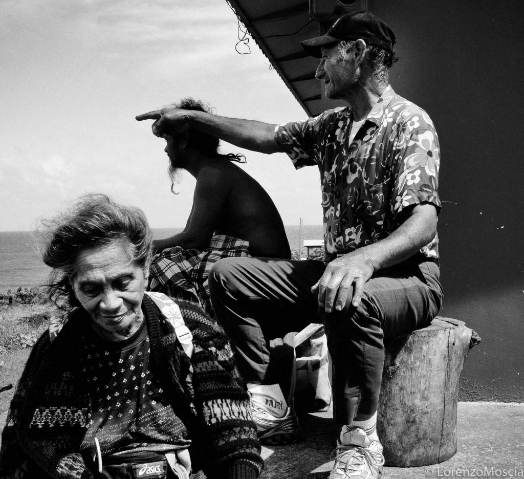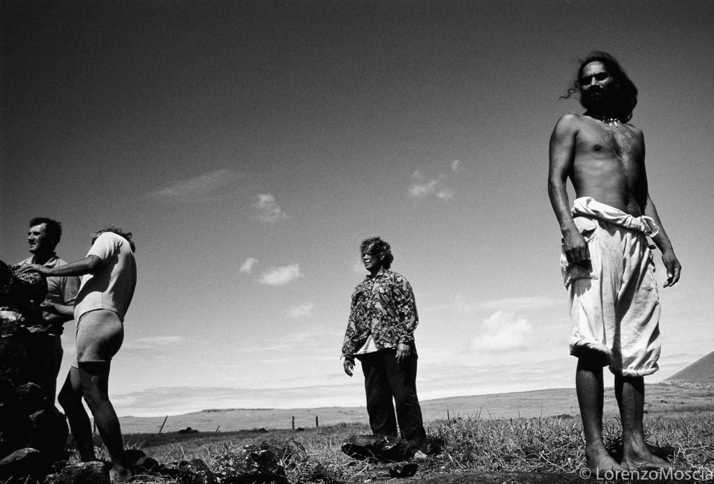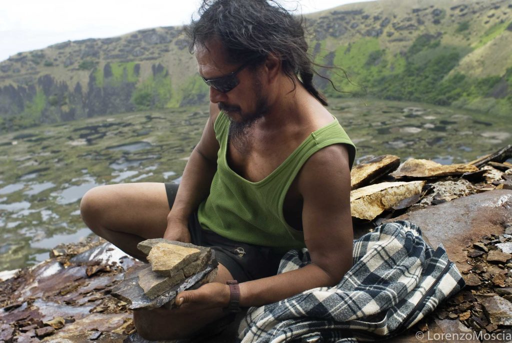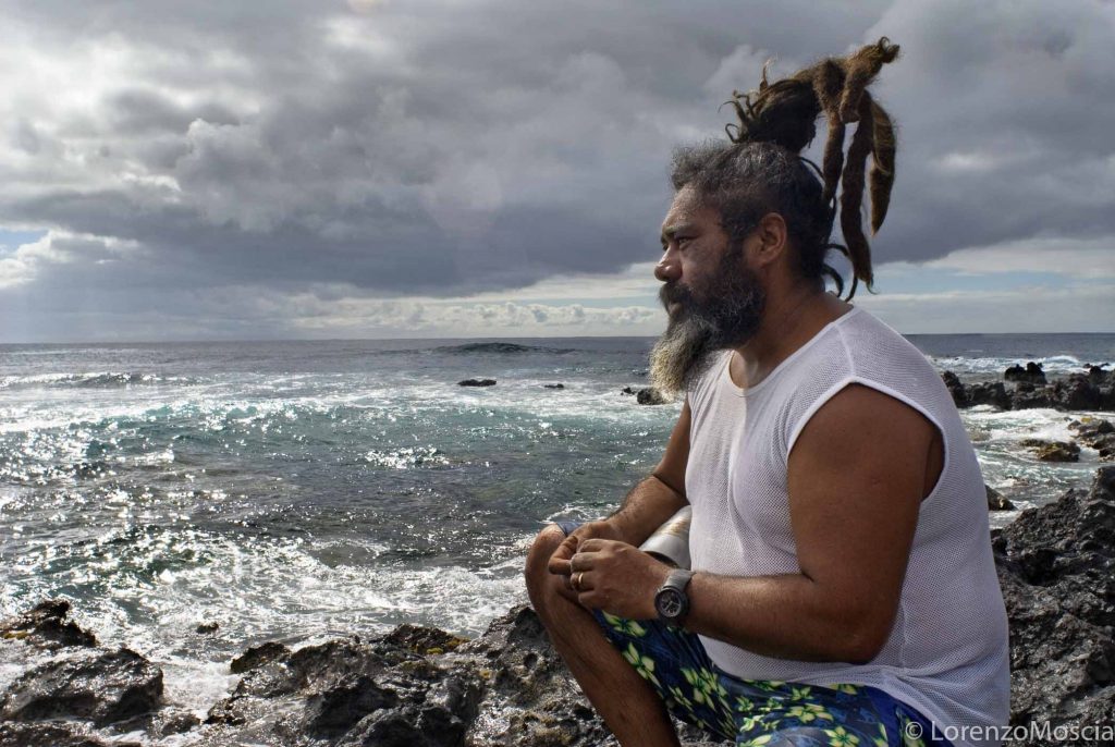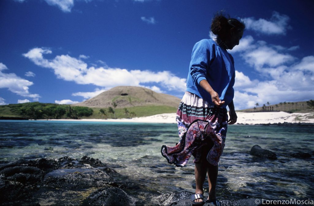 -Paremos aquí –me dice. Unos muchachos salen del agua cargando unas canoas en la caleta de Hanga Piko. Se queda unos segundos en silencio, recordando.