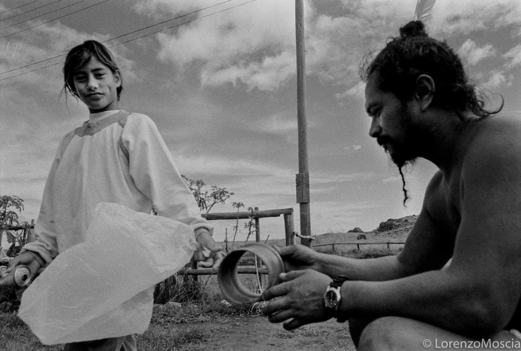 ValentinoRirorokoTuki es el rey de Isla de Pascua. El último. El más reciente. Hace dos meses lo proclamaron en la Plaza de la Gobernación los miembros del Parlamento Rapa Nui. Le pusieron una corona de plumas y mahute. Había sol. También chubascos. Cerca de 60 personas. Trato de imaginarlo en esta mañana verde, trasparente, mientras dejamos atrás la avenida AtamuTekena y nos adentramos por un camino de tierra. Hay pequeñas parcelas a un lado y otro. Unos perros flacos y desgreñados ladran al paso del jeep que hemos arrendado. La casa del rey está lejos de ser un palacio. Es una casita modesta. Así, como se ve, parece deshabitada. Lo llamamos a los gritos. Nadie contesta. La puerta está abierta y por ahí salen dos gatos curiosos. De pronto, de entre los árboles, aparece él. “¡Loreeeenzo!”, dice, al reconocer al fotógrafo de esta historia, quien ya hizo un libro sobre Rapa Nui y un documental. Avanza con la velocidad que sus 79 años le permiten, sin bastón, el pelo cano, anteojos de marco grueso. Lo abraza sonriente. Y cuando me estrecha la mano, curtida y fuerte, siento los oficios con los que se ha ganado la vida: agricultor, pescador, artesano.
