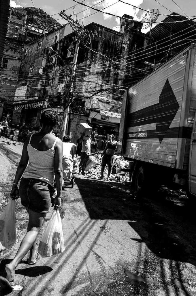 On one of the hills that borders the South of Rio sprawls the favela of Rocinha. It is one of the 800 favelas in Rio de Janeiro; the steep hill is dirty and full of people living almost one on top of another. Nearly 200,000 people live in this four squared kilometre space. It is also the place where most of the drugs in Rio are bought and sold.
