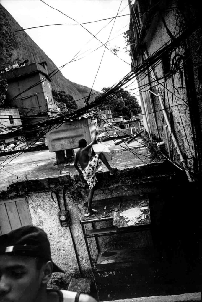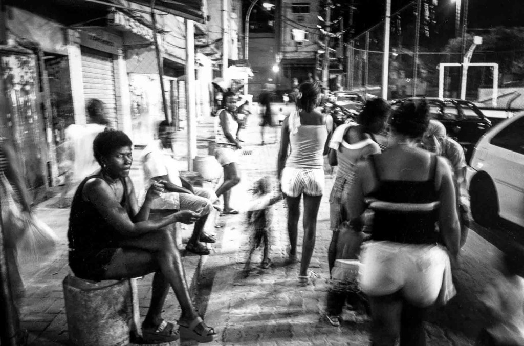And so here in the evening a few of the bandits, with no worries at all and no fear of a possible invasion, begin to celebrate the start of the weekend practically at the entrance to the favela. They listen to funky music that sings about their old boss, they drink beers and every now and again a stolen watch circulates amongst them. Every so often one of them leaves but then returns with a different look on his face and bursting with energy. They always have three or four women circling around them, some of them are extremely beautiful. One of the taller girls, with a perfect body and pert breasts is the chosen one of the night for the bandit who seems to be in charge. He shows her where to sit, and so she sits and begins drinking the beer from his glass, totally silent. Meanwhile, another much younger blond girl doesn’t dare move from in front of the car door, from which the music is surely deafening anyone who goes near it, with the words and the music of “oh, uh uh, que saudade do Lulu”.