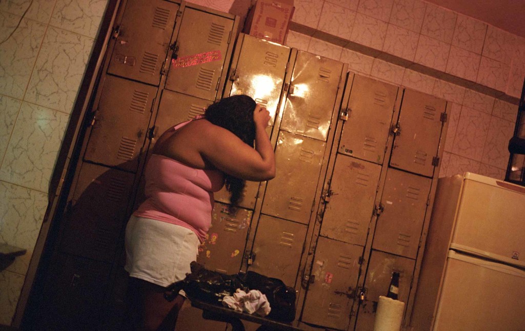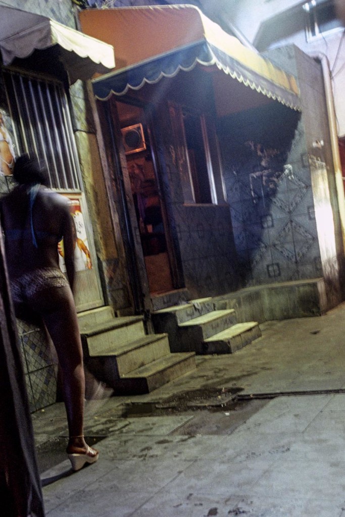 “I’m 22 years old; I started when I was 17. My parents died and I needed a way to support myself. One of my friends told me that this wasn’t a difficult job so I started to do it too.” It’s as if she’s talking about any old job, and she is certainly a serious worker; she has working hours to keep track of her nightly business and tries not to get caught up losing her time. “I started off in the bath houses, and then went on to private homes, then on to strip clubs and now here I am in Vila Mimosa. It’s much better here because the clients respect you; they always pay you and never complain. Also, we take care of ourselves a lot more here; we take HIV tests every three months and whoever gets an STD has to move on and find somewhere else to work. What do I think of prostitution? Well, let’s say it’s like cocaine: the first time you try it it’s horrible, but after that you just can’t stop. How much do I earn? Around 3000 Reais per month, (900 Euros).” We meet her again on our way out, she waves goodbye to us as if she were doing any normal job, waiting to go home and rest in the evening to wait for the next day to start. Her name is Branca.