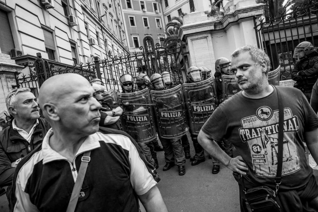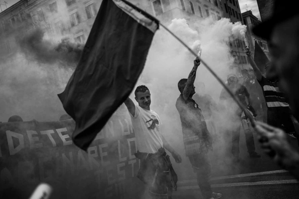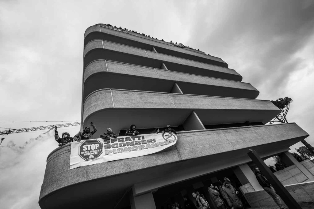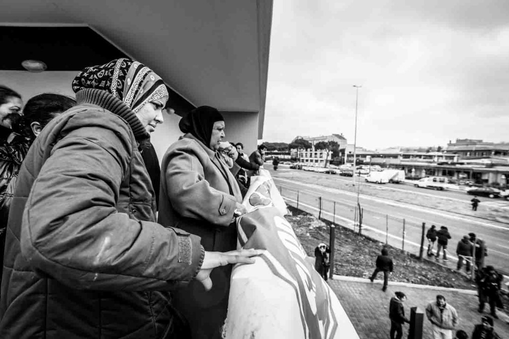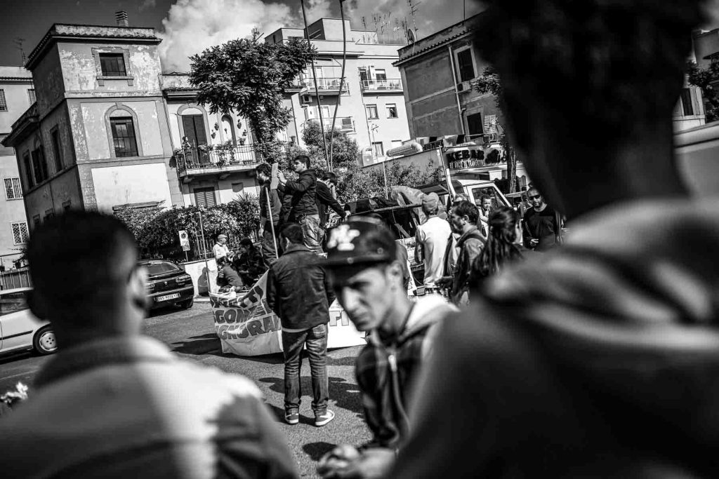 Rome 2014, Homeless people celebrate the occupation of an abandoned building that will be their new roof