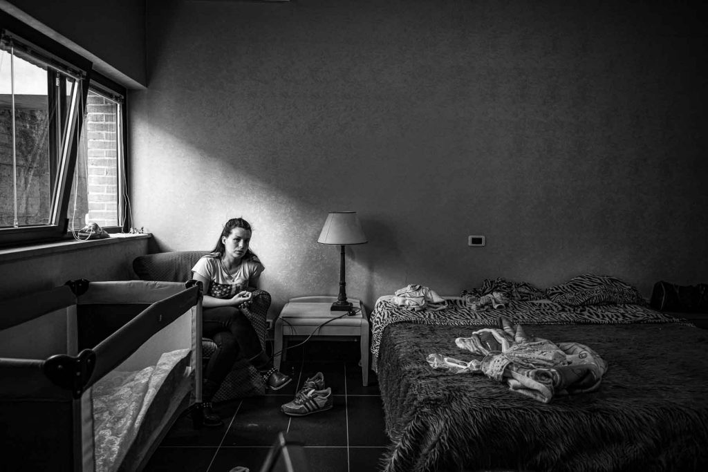 Rome, Italy, may 2013. Jenny (24) after been evicted from her house she, her husban and son occupied an empty hostal in Rome.
