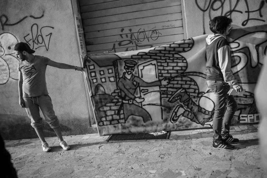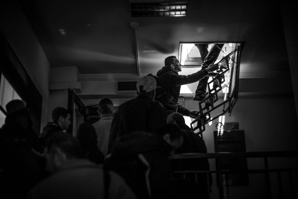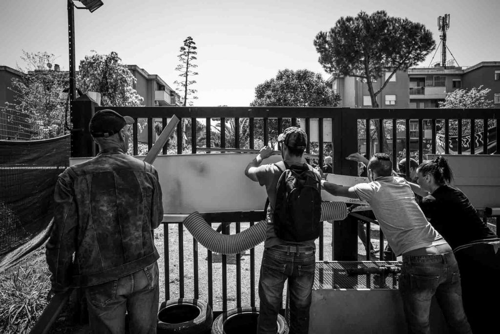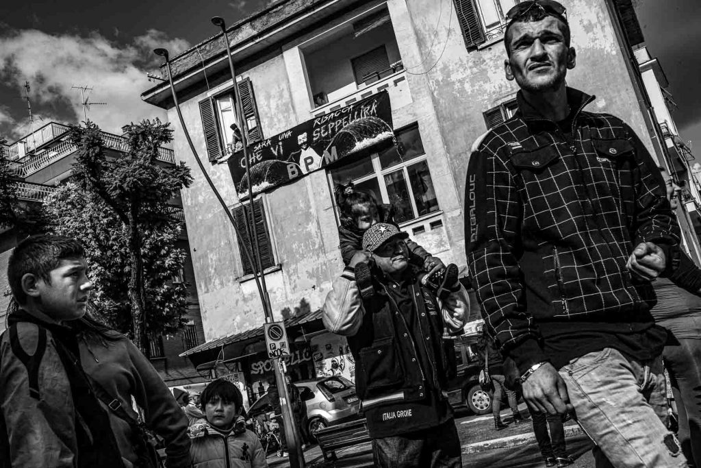 Rome , 2014 Homeless people celebrate the occupation of an abandoned building that will be their new roof