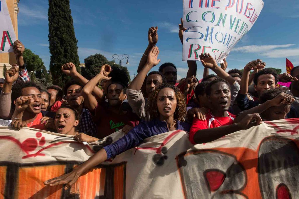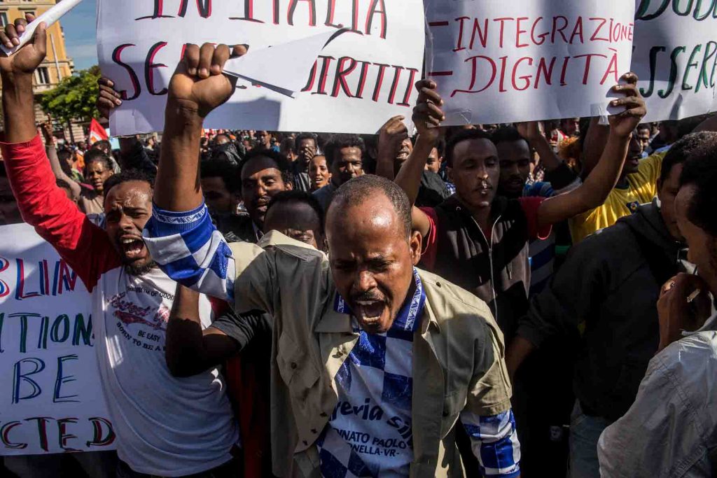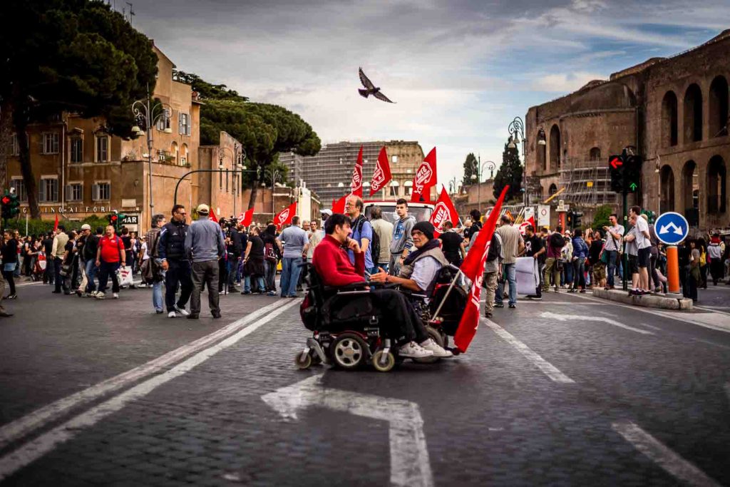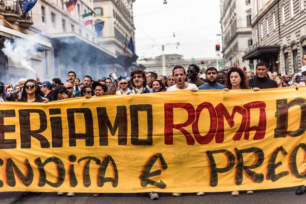 Rome, Italy, apr,2014. March of homeless people in the center of Rome against the mayor of Rome and against the policy of austerity.