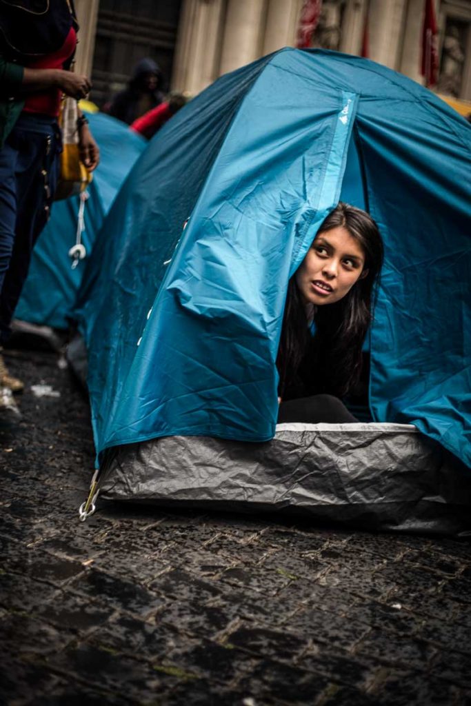 Organizers estimated that 70,000 people took part in the protest, while authorities placed the number closer to 50,000.los demostrativos decidieron acampar en frente del ministerio del trabajo