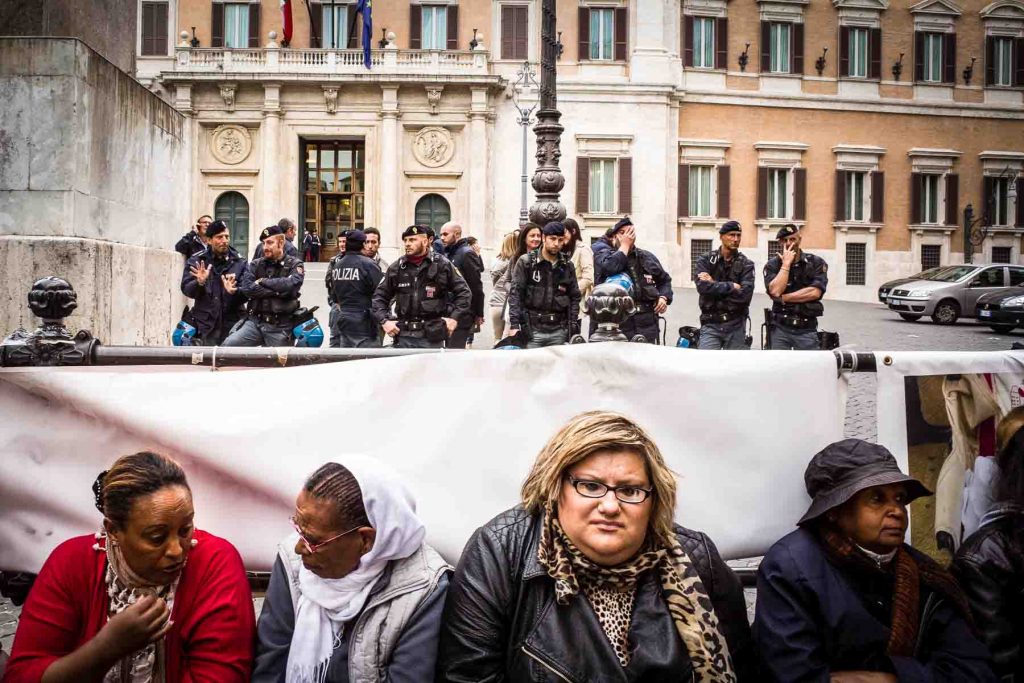 Rome, Italy, may 2014. Protesters in front of the Italian Parliament. At the base of the protest the rule that it is not possible to connect electricity and gas for those illegally occupying a house.
