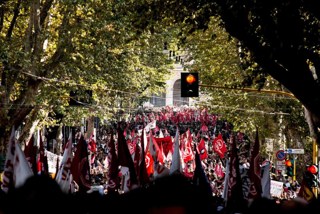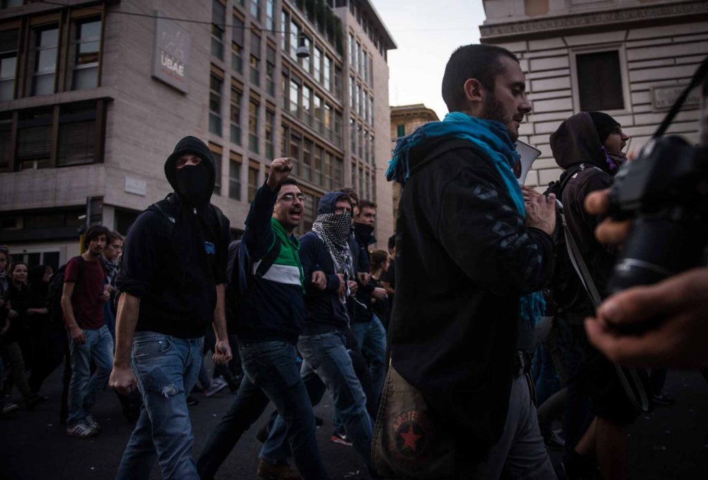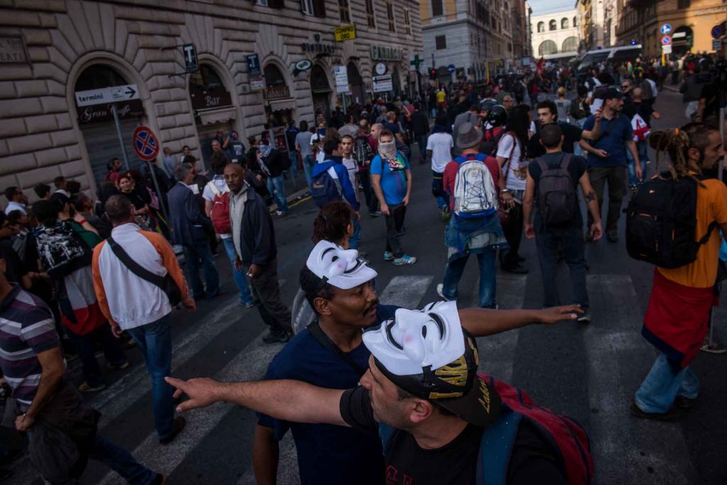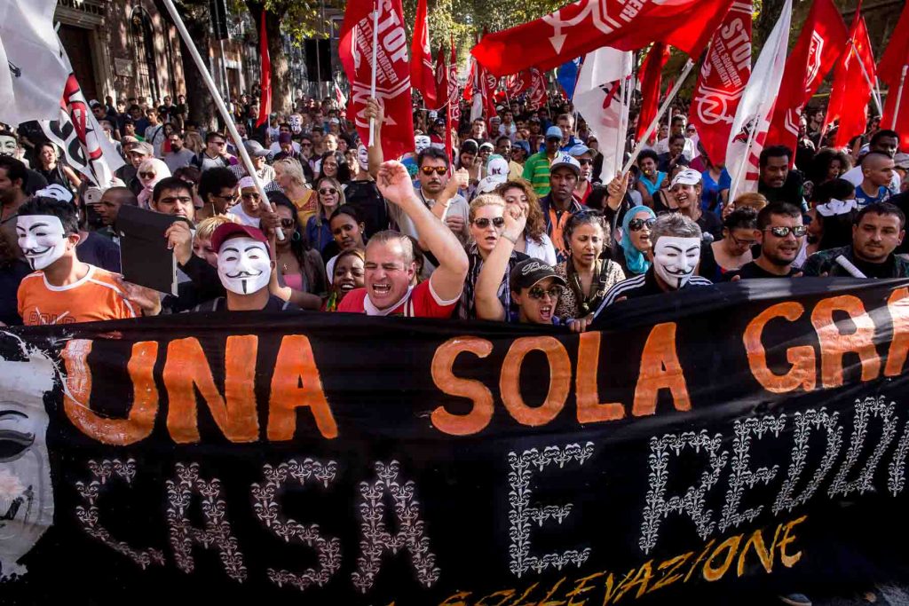 Rome Italy oct 2013. Protest against unemployment, government cuts and construction projects they say take money away from social services.
