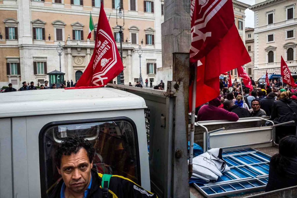 Rome, Italy, May 2014.Demonstration against the house plan and the jobs act.At the base of the protest the rule that it is not possible to connect electricity and gas for those illegally occupying a house.