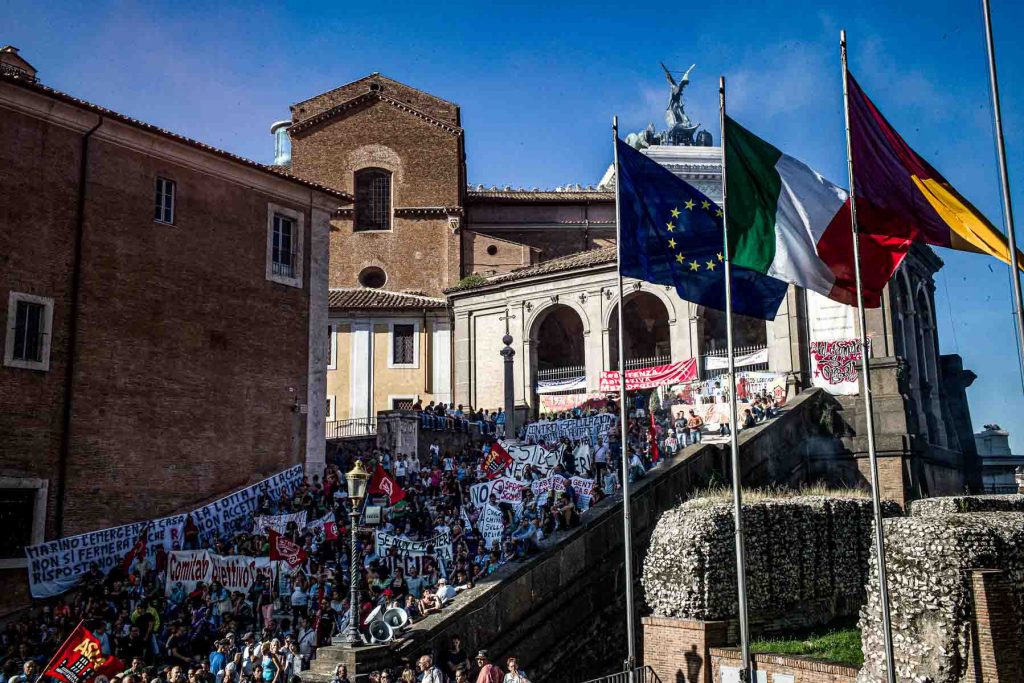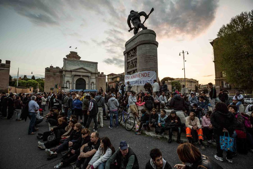 The movements of the struggle for housing had gathered in the square below and have virtually invaded by putting the focus firmly on the emergency housing in Rome and on possible solutions.