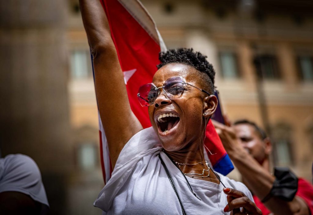 Rome, 13 july 2021. Hundreds of Cubans demonstrate in front of the Italian Parliament in support of the Cuban people who are rising up against the dictatorship that has been harassing the Cuban people for 62 years. Several Italian politicians from both the political right and the left supported the protests