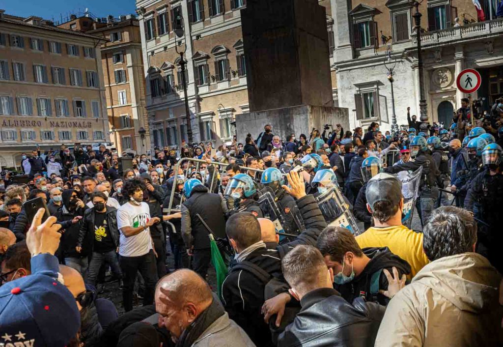 Rome, April 6, 2021 – The anger of shopkeepers and restaurateurs takes to the streets all over Italy, to ask for the anti-Covid measures to be relaxed despite glimpses of reopening starting from April 20. In Rome in particular, there were moments of high tension in front of the Montecitorio, with clashes between the demonstrators and the police, deployed in anti-riot gear. The climate is very tense.